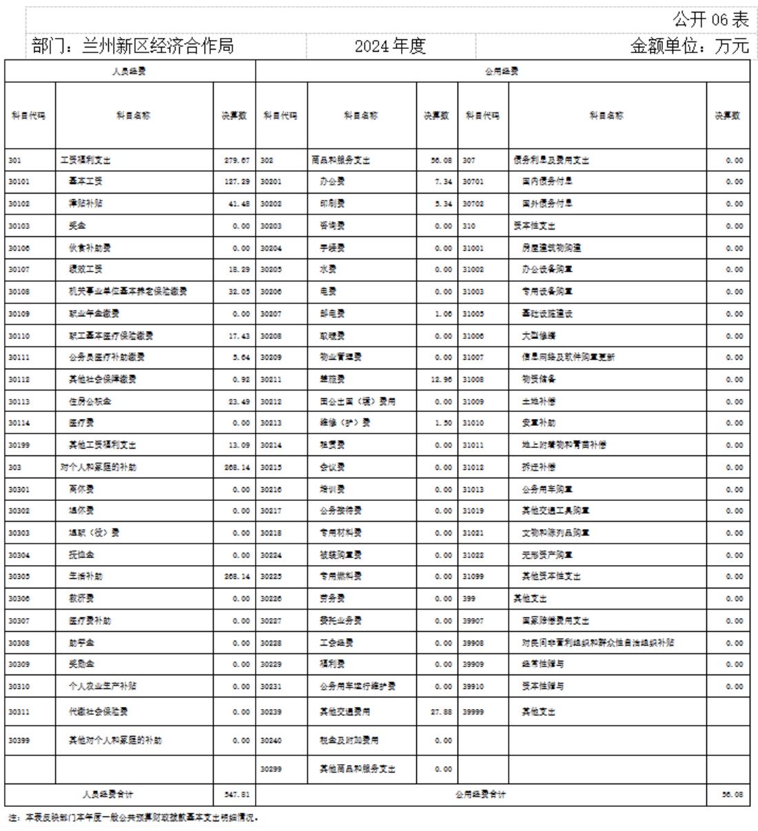 2024年度一般公共預算財政撥款基本支出603.89萬元。其中: