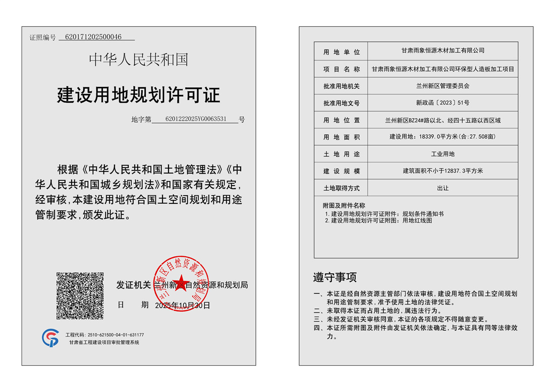 項目名稱:甘肅雨象恒源木材加工有限公司環保型人造板加工項目
